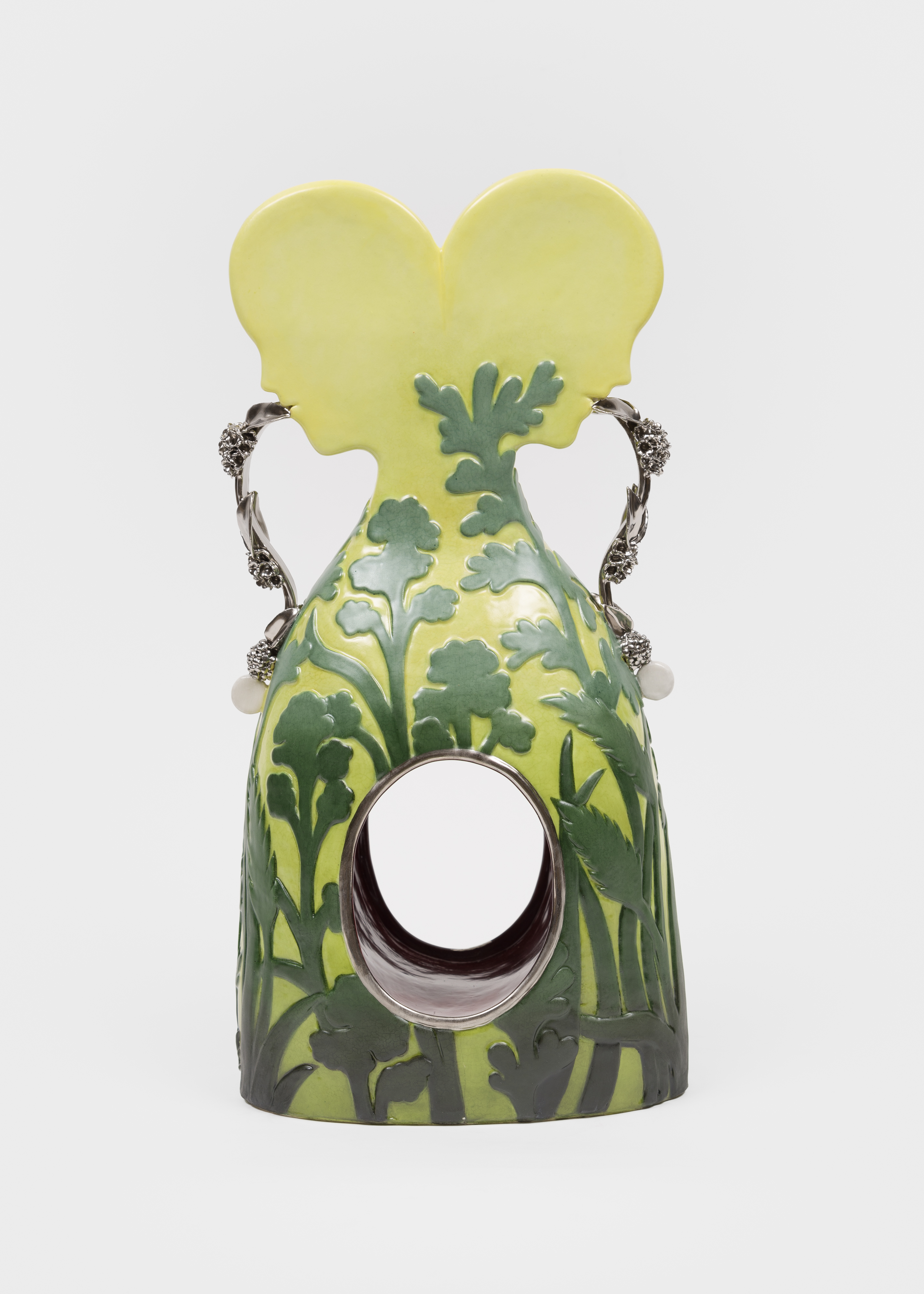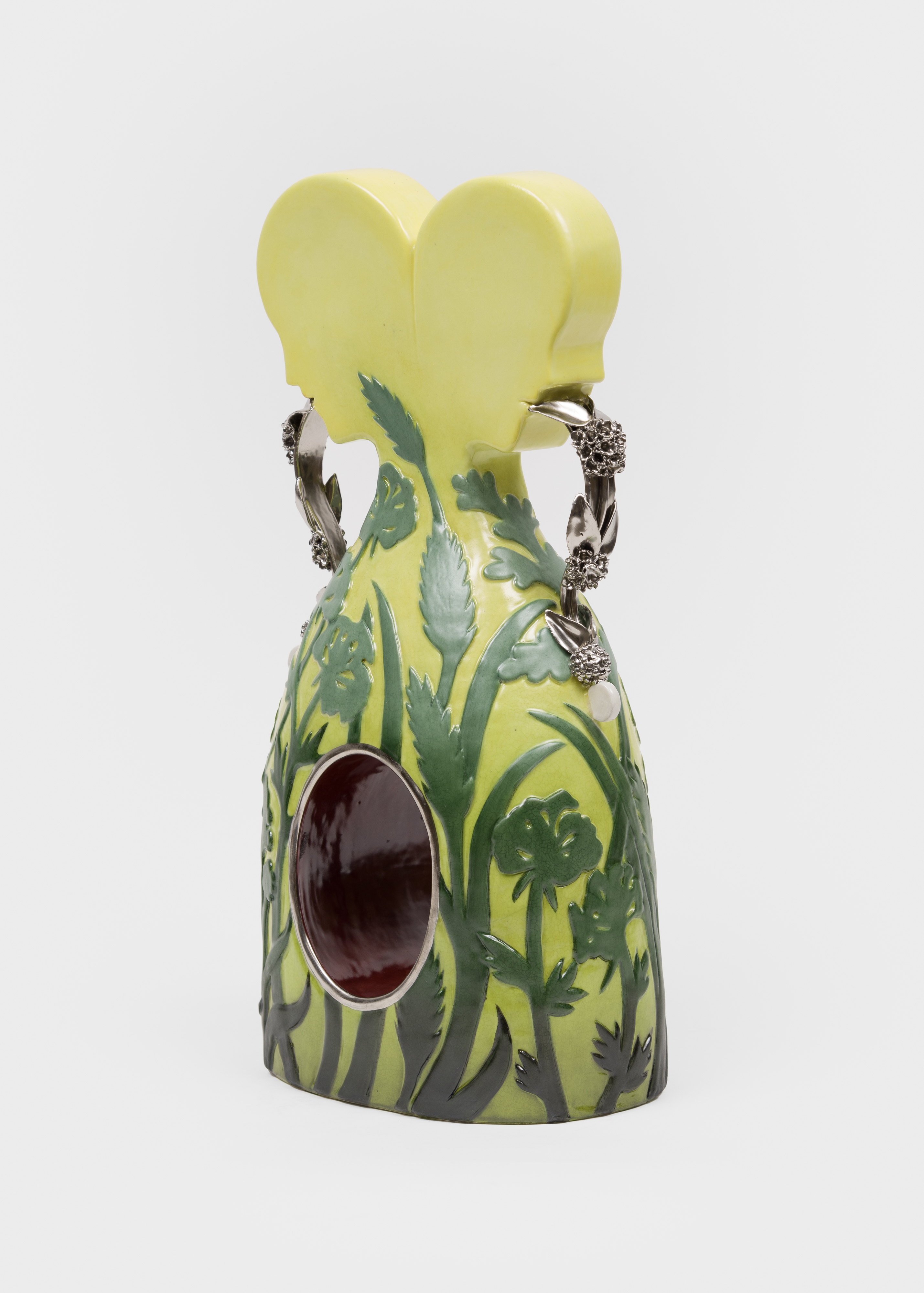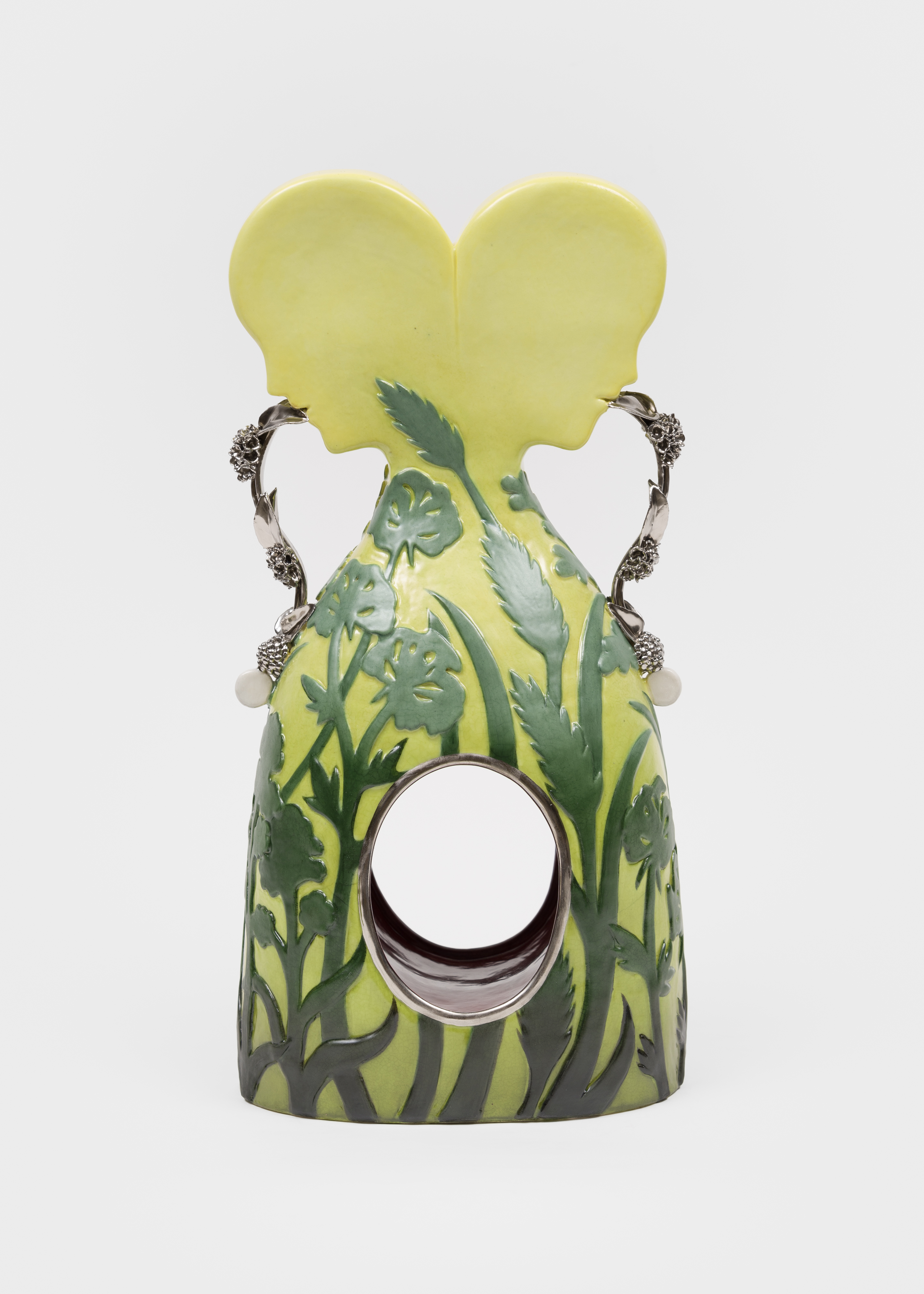 19 x 8 1/2 x 4 1/2 ins., porcelain, glaze, china paint