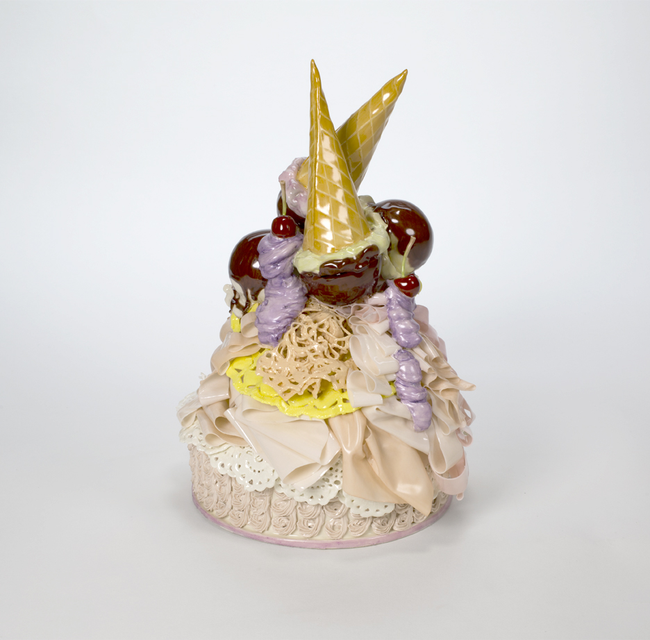2013, porcelain, glaze, china paint, 12 x 7.5 x 9 ins.